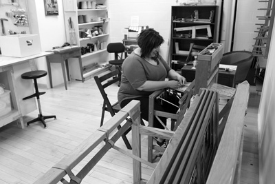 The space currently includes bookbinding, letterpress and other printing-related equipment as well as looms, cutting boards and other tools of the fiber arts. More will be added as the membership and its range of interests grows.