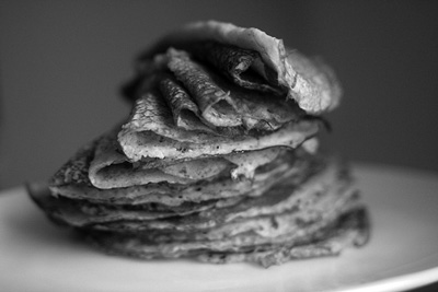 When it comes to pancakes, Halloran is a purist. She objects to adding fat to pancake or crepe batter. For the stovetop baking, only butter will do, and she considers a cast aluminum griddle indispensible for its ability to evenly distribute heat. She brandished a rectangular griddle for the pancakes and a round one with a handle for crepe making.