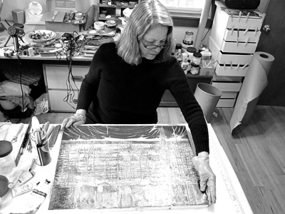 “My early connection to textiles has returned in the exploring of surface texture in my recent work,” Mara said. “After painting in oils for many years, I discovered encaustic, which opened the door to new exploring.”