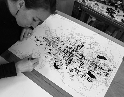 Jenny Hutchinson works on a project last year at her studio in the Shirt Factory building in Glens Falls. Hutchinson is education director at The Hyde Collection museum but sees her real work as her art. Courtesy photo