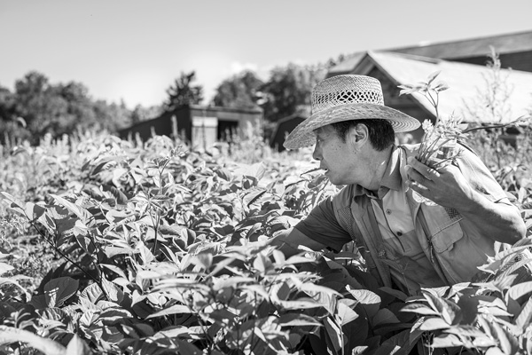 Jinah Kim's father, Amos Kim, raises vegetables for the restaurant at Garden of Eden Farms in Cambridge. Joan K. Lentini photo