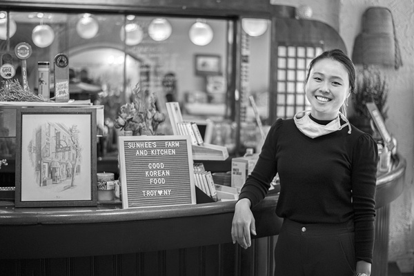Jinah Kim, above, welcomes visitors to Sunhee’s Farm and Kitchen, her family’s restaurant in Troy, N.Y. Joan K. Lentini photo